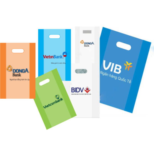 Thiết kế in túi xốp cho ngân hàng là giải pháp chuyên dụng, thường dùng túi hột xoài PE dẻo bền, chịu sức nặng tốt để đựng tiền mặt hoặc vật dụng cần vận chuyển. Túi được in logo và thông tin của ngân hàng nhằm tăng nhận diện thương hiệu. Túi có các kích thước đa dạng có sãn, ngoài ra các xưởng cũng nhận chạy theo kích thước yêu cầu riêng của khách hàng